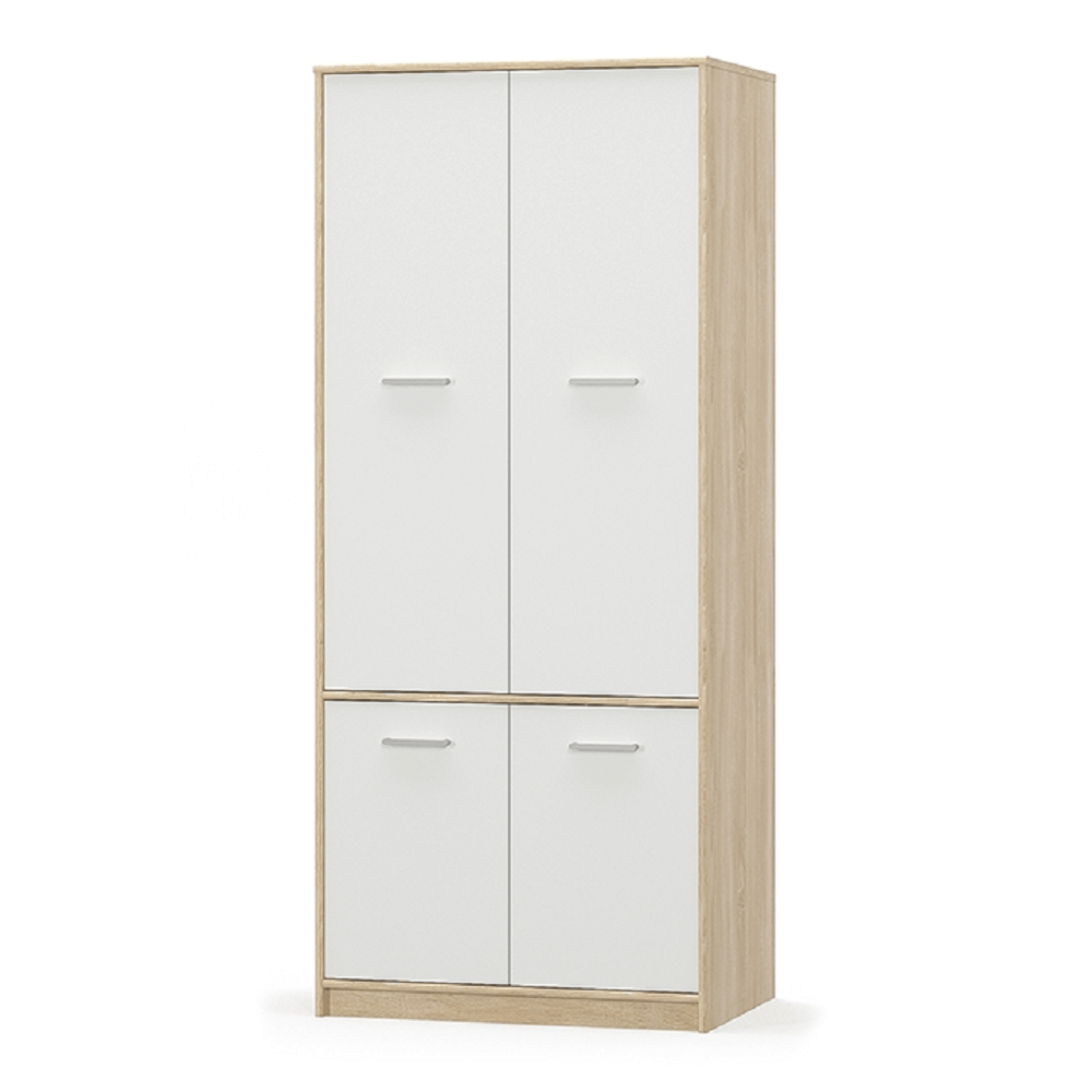 4- dveřová věšáková skříň, bíl/dub sonoma, TEYO