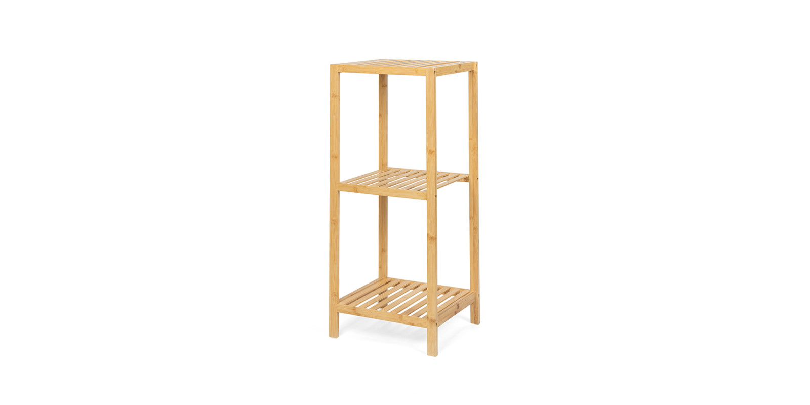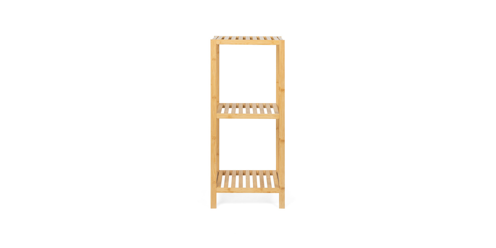 Praktický policový díl s třemi úložnými policemi. Vyroben z odolného bambusu, který je pevný a ekologický. Otevřená konstrukce umožňuje snadný přístup k uloženým věcem. Všestranné využití v koupelně, kuchyni, předsíni nebo ložnici. Jednoduchý a přirozený design, který se hodí do různých interiérů.