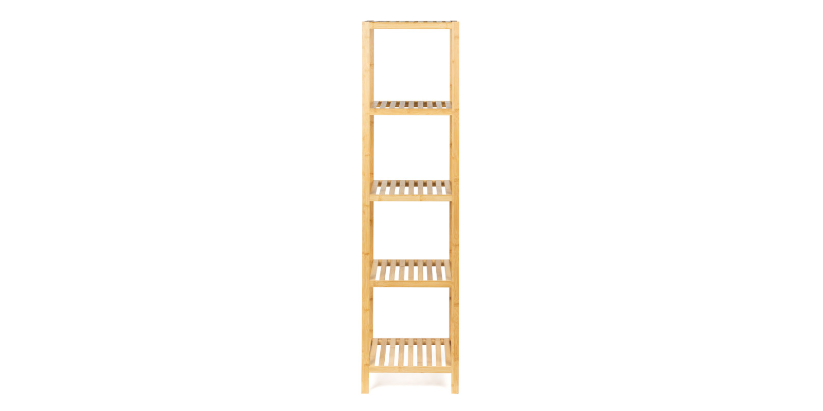 Praktický policový díl s pěti úložnými policemi. Vyroben z odolného bambusu, který je pevný a ekologický. Otevřená konstrukce umožňuje snadný přístup k uloženým věcem. Všestranné využití v koupelně, kuchyni, předsíni nebo ložnici. Jednoduchý a přirozený design, který se hodí do různých interiérů.