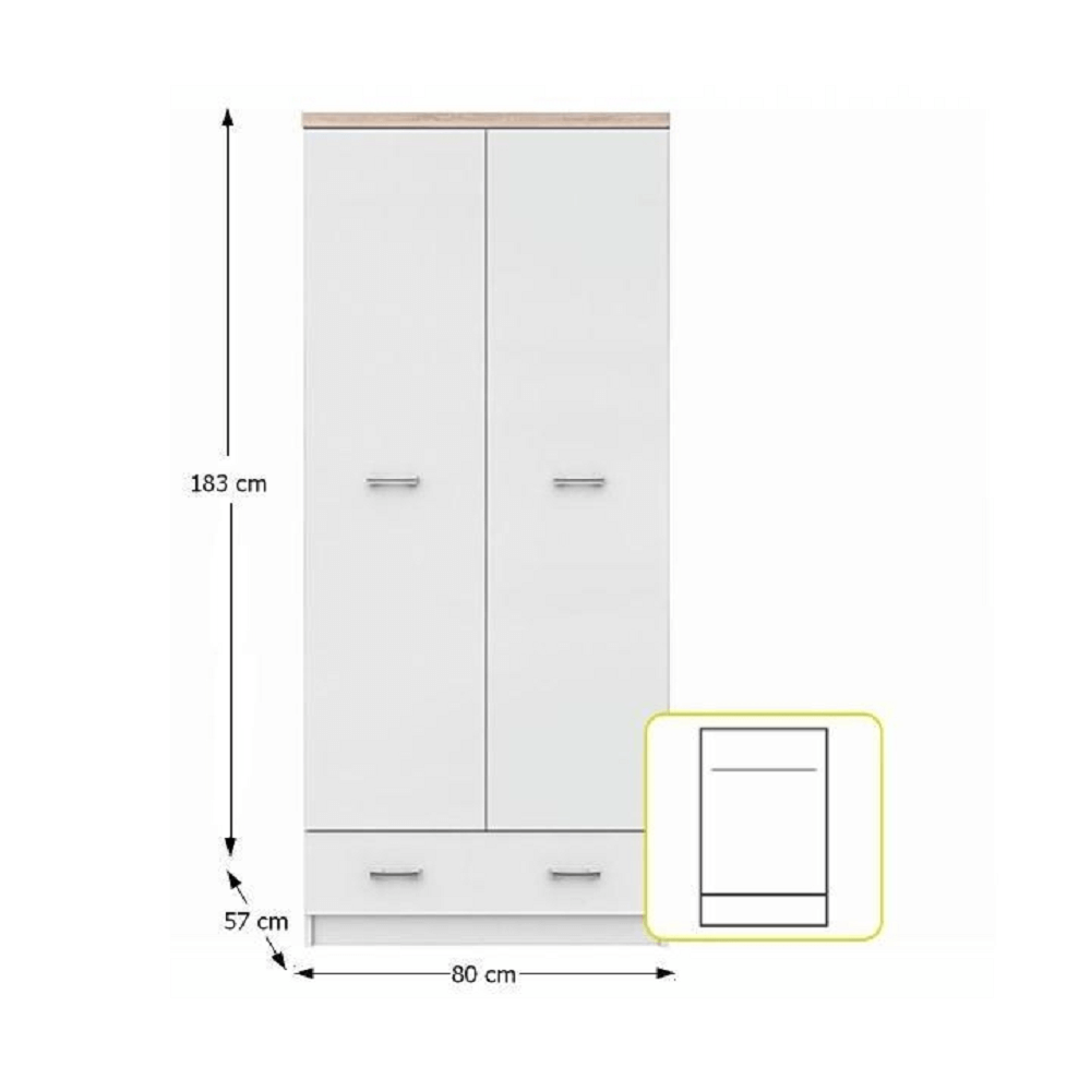 Domů / LOŽNICE/ Skříně a skříňky / Dvoudveřová skříň 2D1S, bílá / dub sonoma, TOPTY