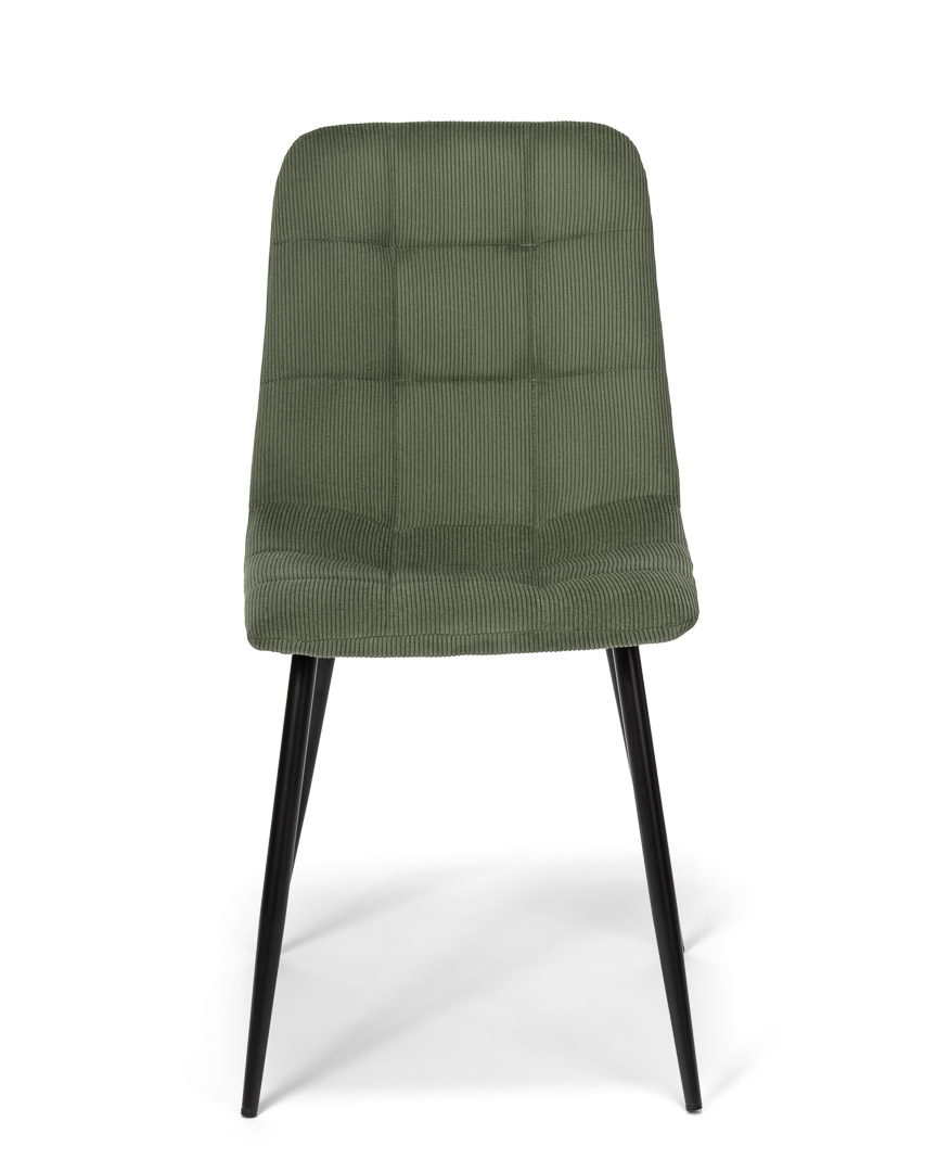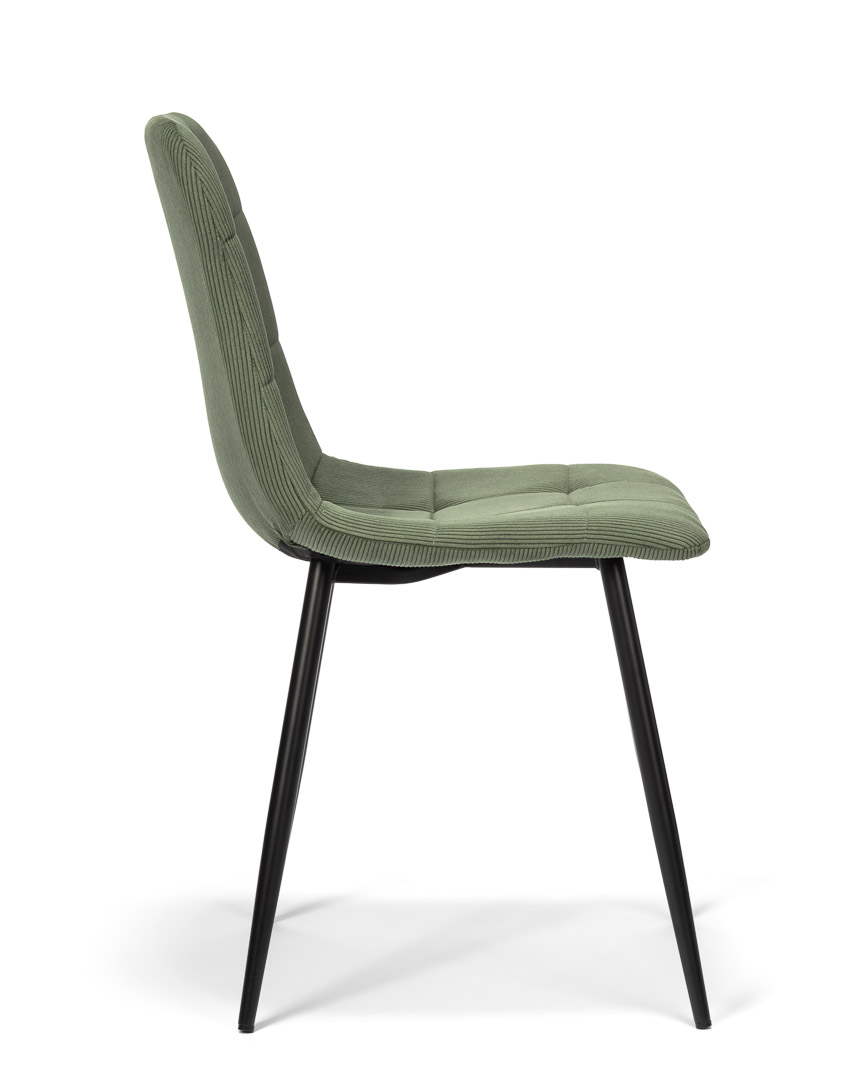 Čalouněné židle v přírodním zeleném tónu dodávají prostoru jemnou barevnost a klid. Jejich ergonomické tvarování zajišťuje komfort při každodenním používání, zatímco měkké linie přispívají k vizuální pohodě celého prostoru.