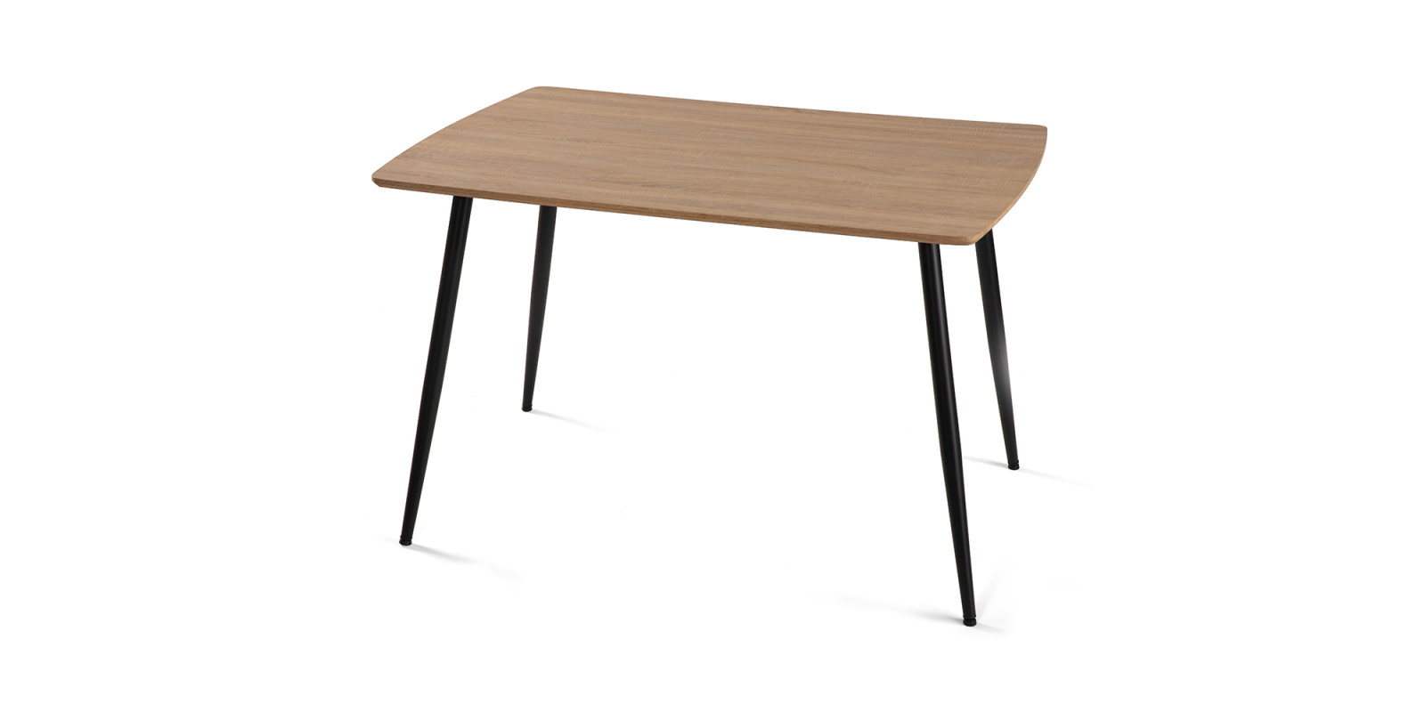Světlá stolová deska v dekoru dřeva opticky otevírá prostor a přináší do interiéru lehkost. V kombinaci s tmavou, subtilní podnoží vzniká moderní kontrast, který nepůsobí rušivě, ale naopak podtrhuje celkovou eleganci.