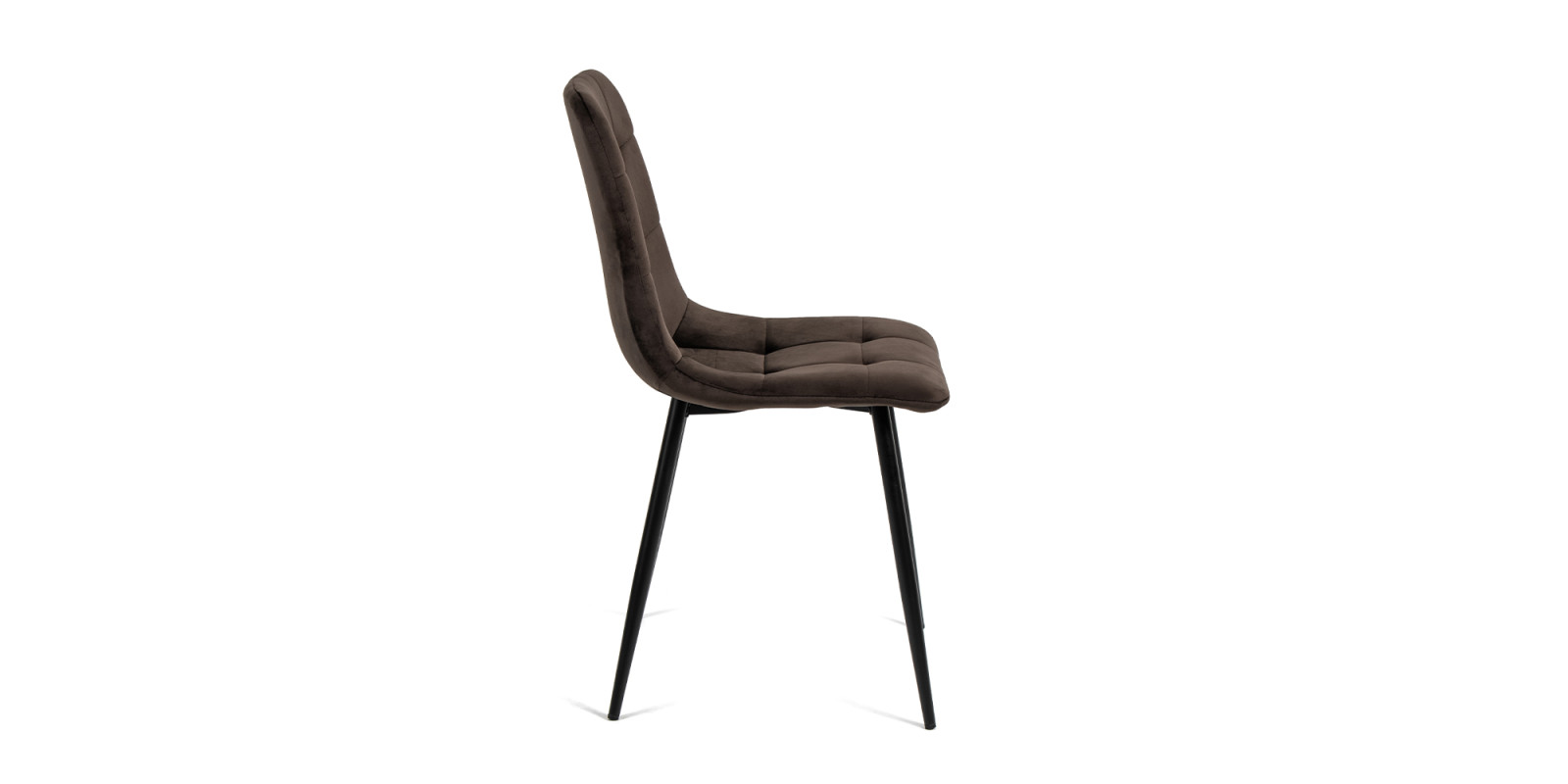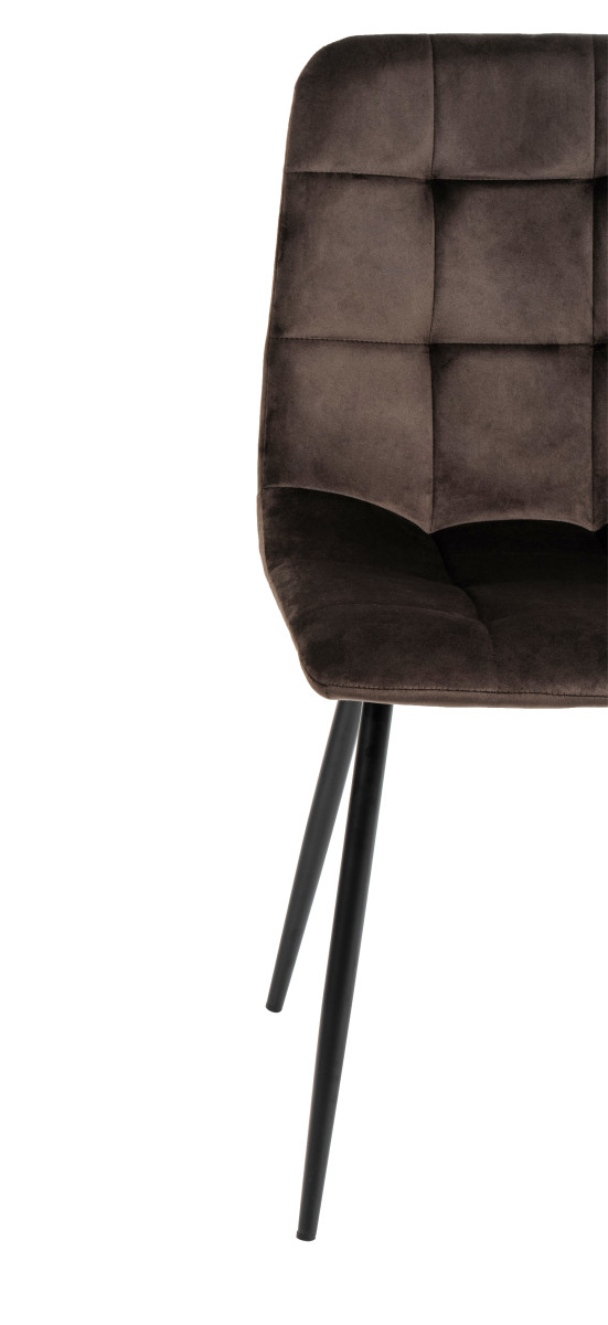 Elegantní židle s nadčasovým designem. Pohodlné čalounění v hnědém sametovém provedení s prošíváním. Stabilní kovové nohy v černé barvě. Vhodná do jídelny, obývacího pokoje i pracovny. Spojení komfortu, stylu a odolnosti.