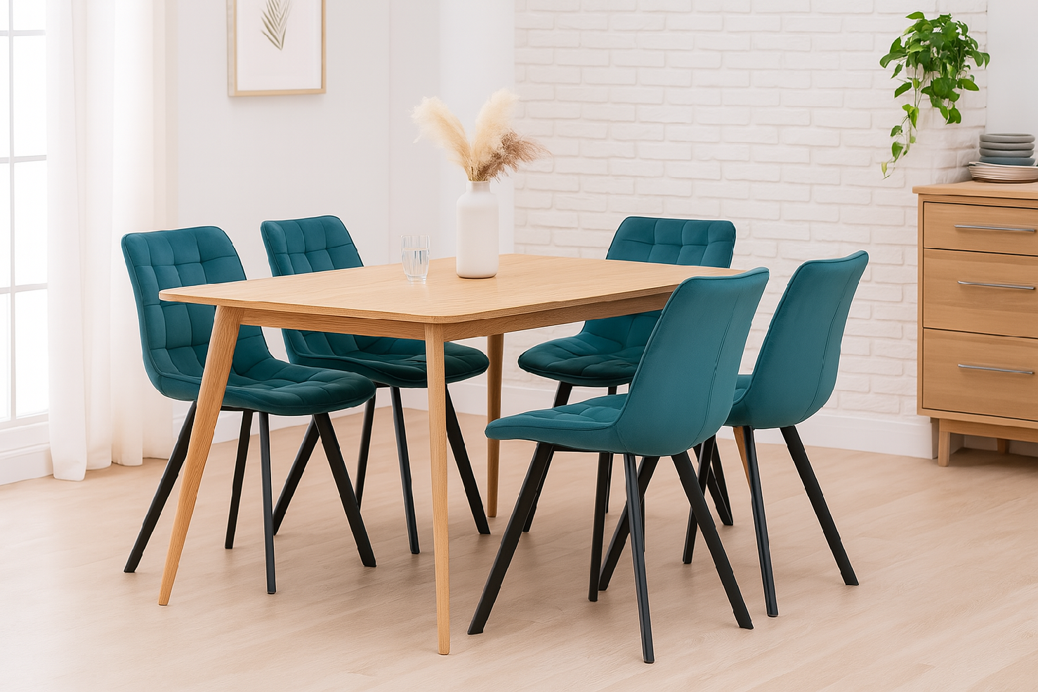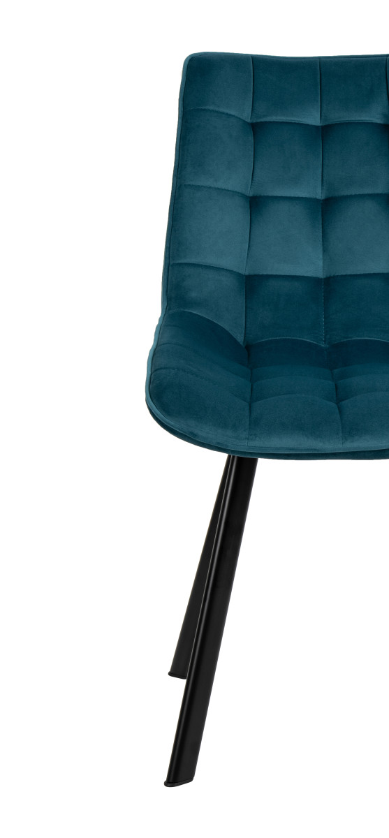 Židle Bella v tyrkysové barvě přináší do interiéru výrazný prvek v kombinaci s pohodlným sezením. Sametový potah působí měkce a luxusně, zároveň se snadno kombinuje s přírodními i tmavšími tóny v místnosti.