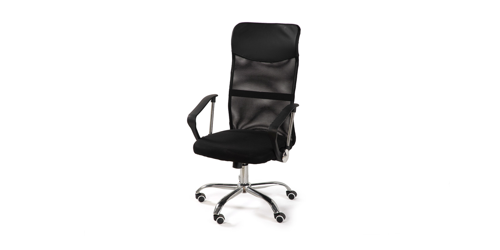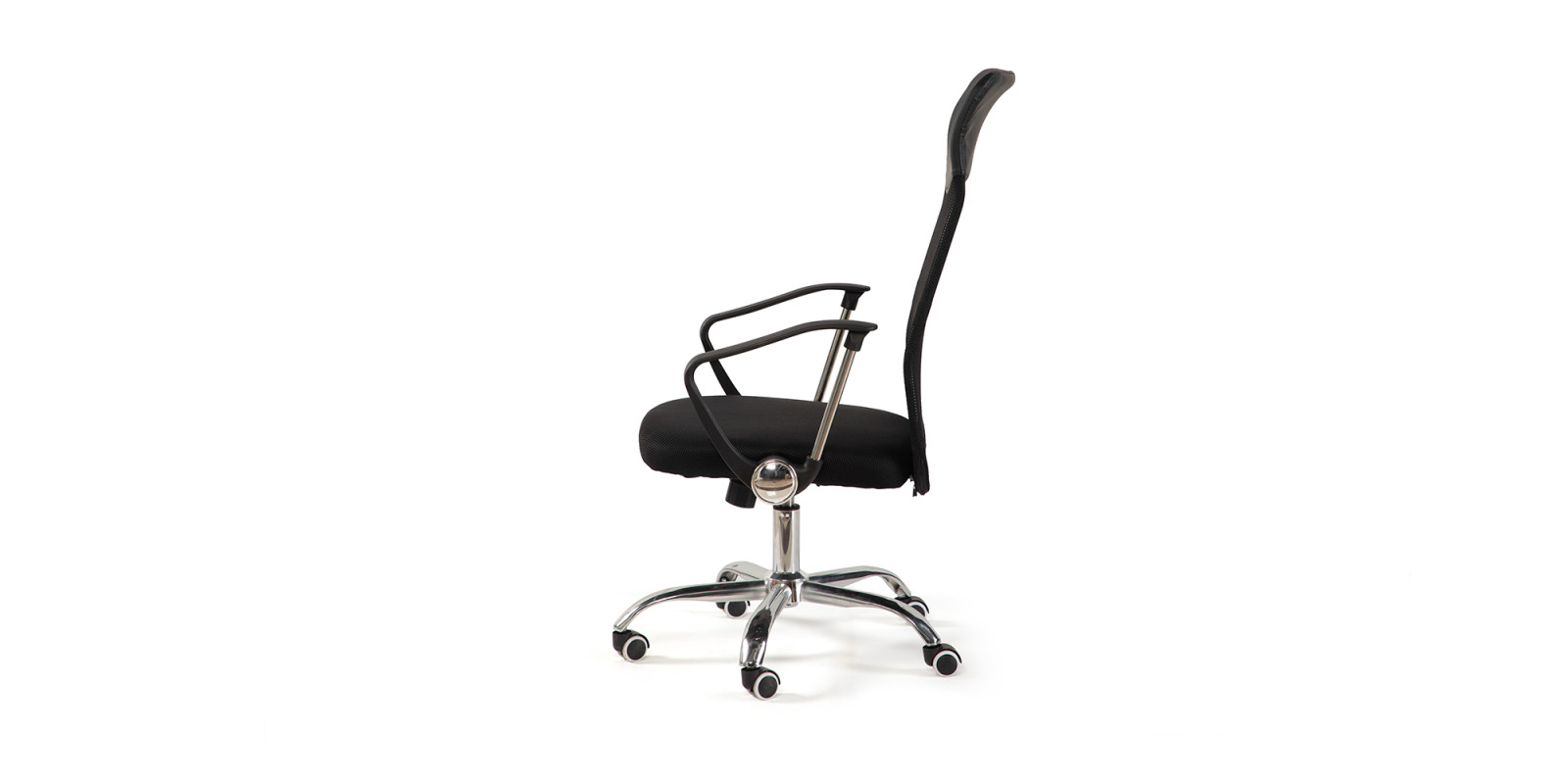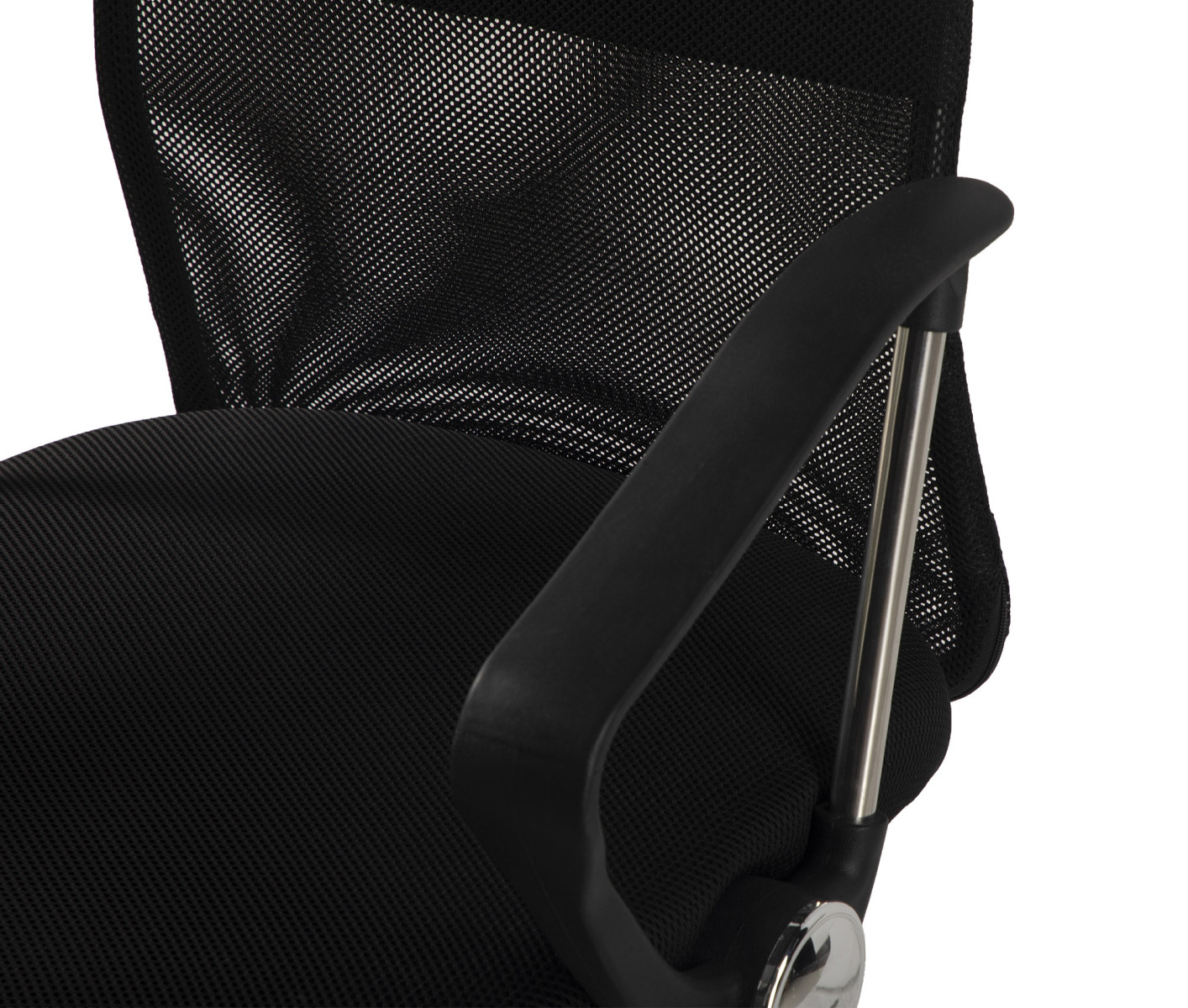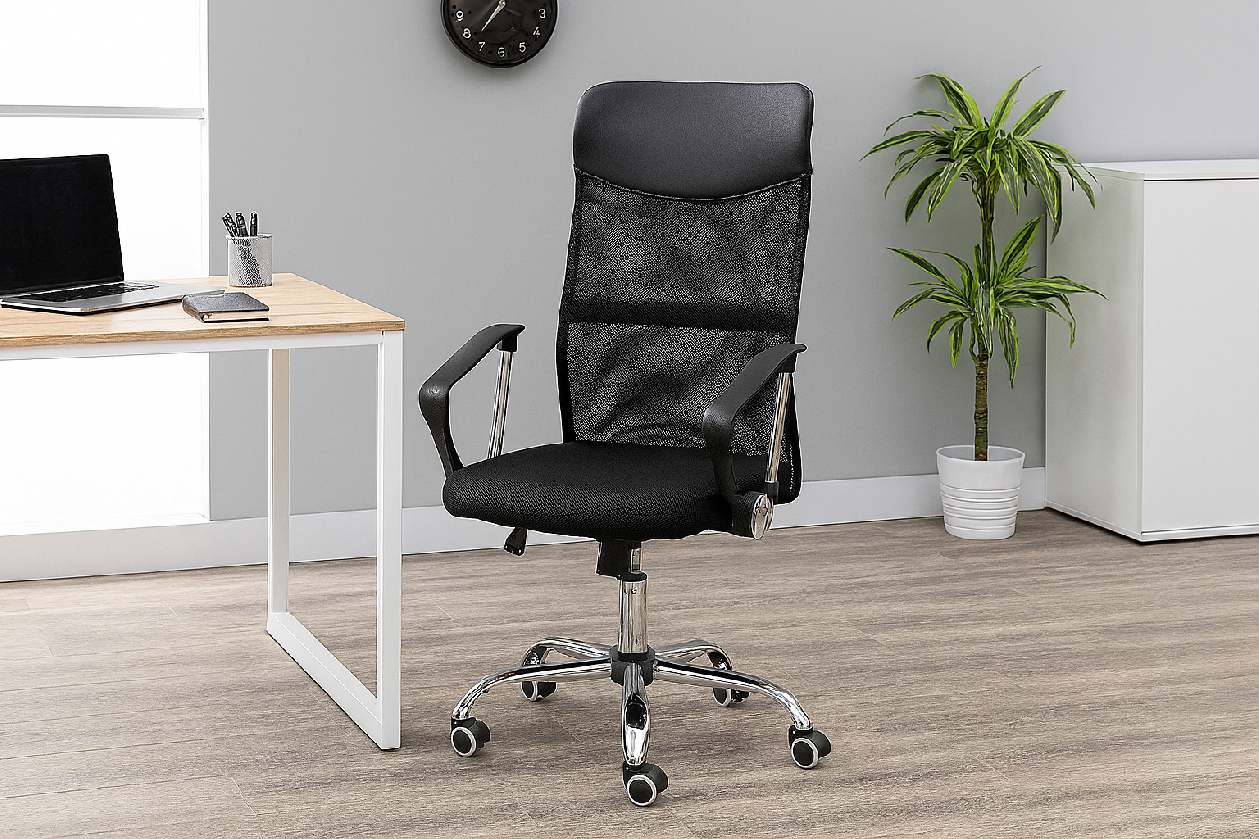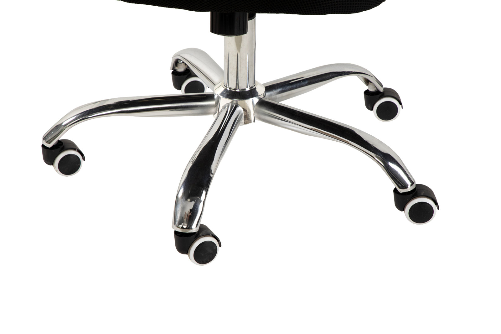 Stabilní chromová základna s kolečky zaručuje hladký pohyb po kanceláři i dlouhou životnost.