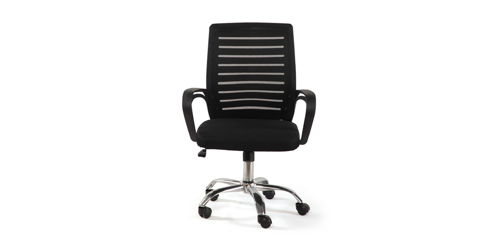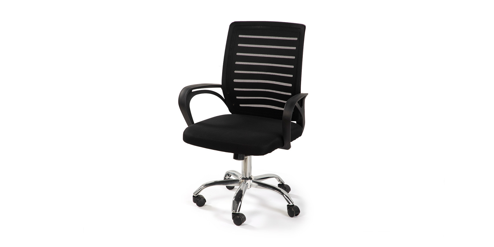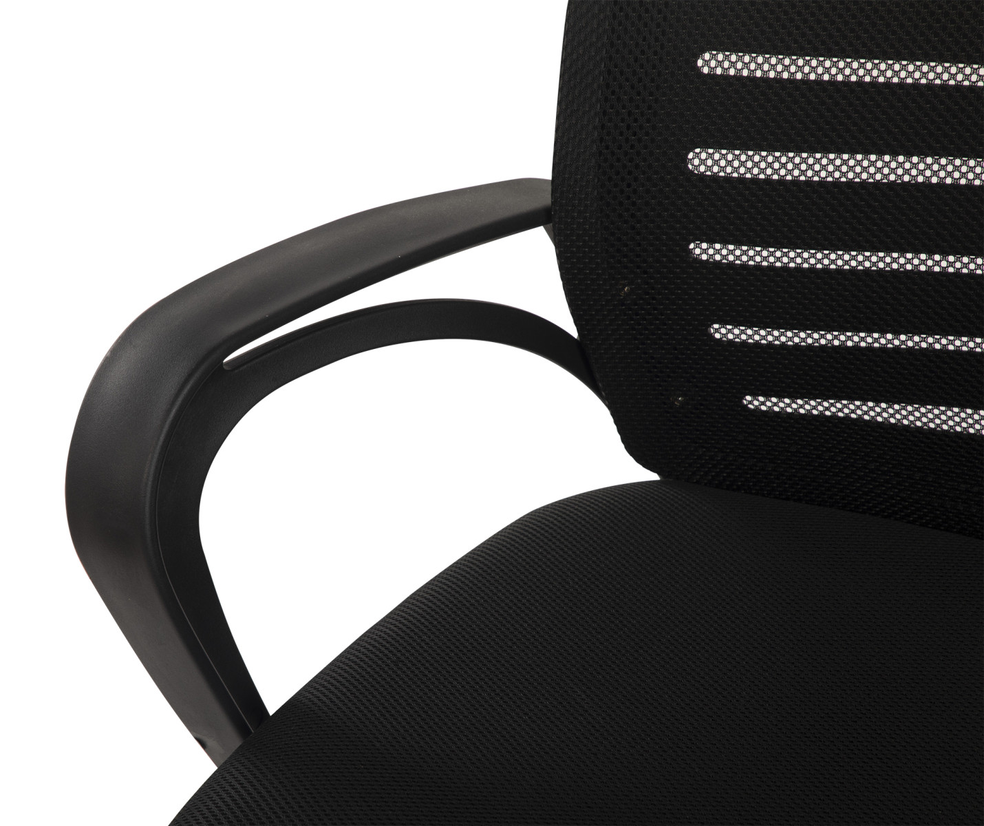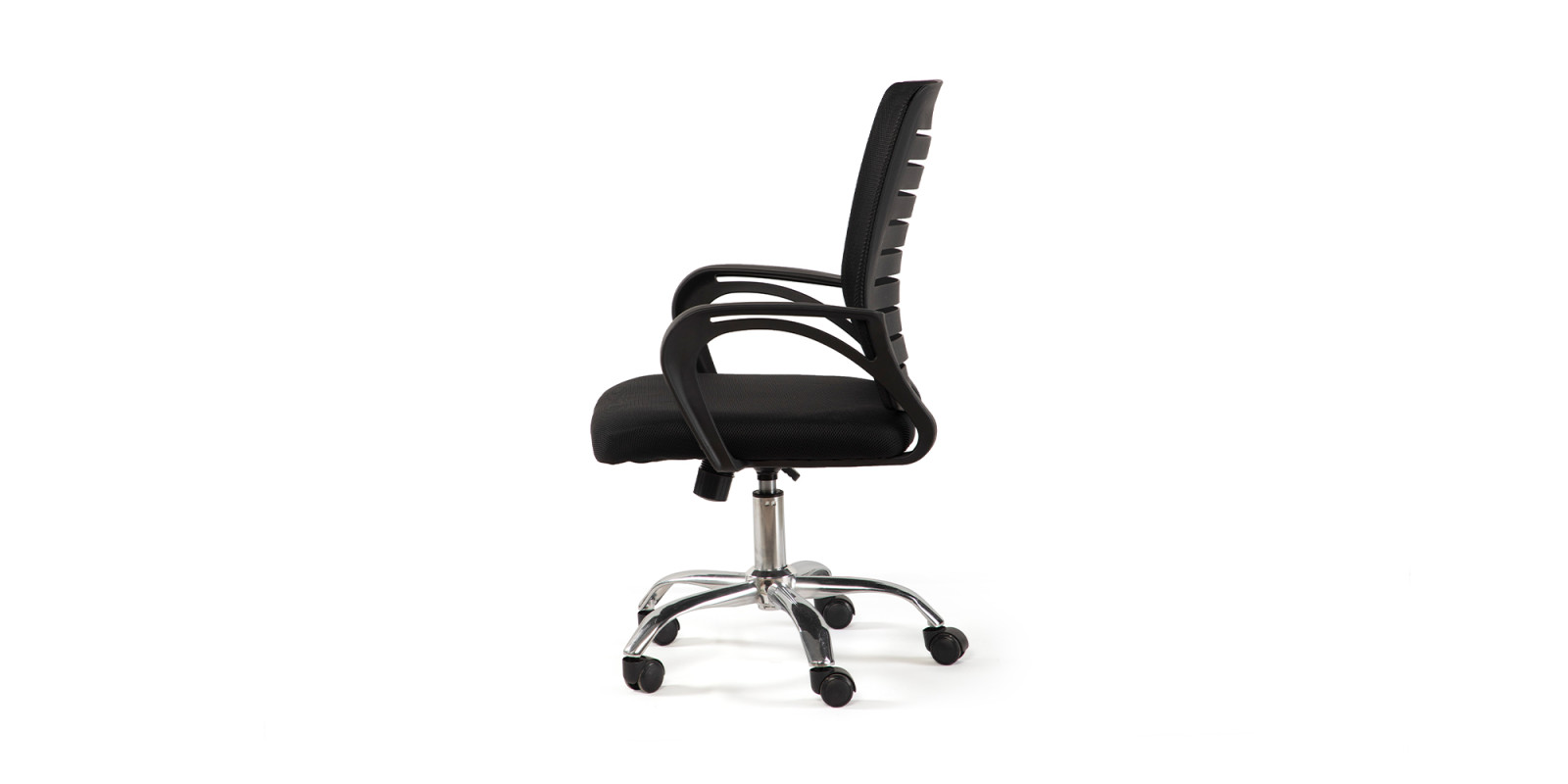 Díky prodyšnému síťovanému opěradlu zůstává sezení příjemné i během delší práce u počítače.