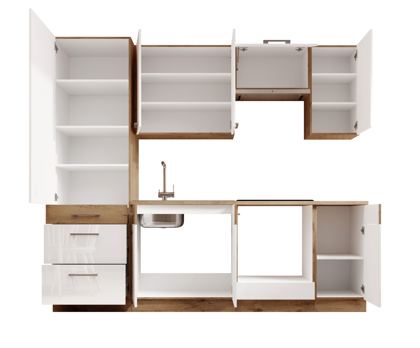 Kolekce Vika je sada kuchyňských skříněk, která se skládá ze 7 modulů, do nichž lze umístit veškeré potřebné kuchyňské příslušenství. Sada Vika je přizpůsobena pro instalaci trouby. Díky kombinaci bílého lesku a lancelotu se kuchyně stane útulným místem, kde je vaření velkým potěšením. Souprava má pracovní desku, která je ideální pro každodenní použití. Díky použití vysoce kvalitních materiálů je nábytek trvanlivý a odolný vůči poškození.
