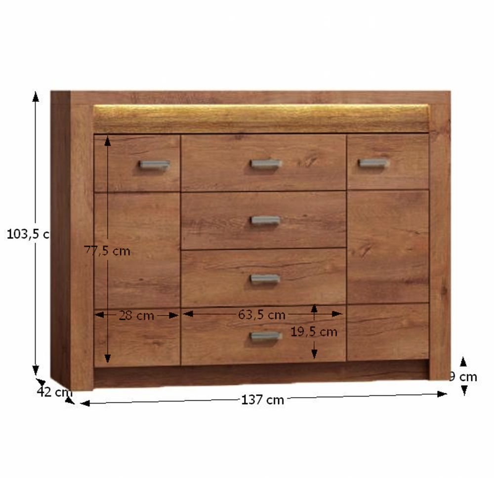 Rozměry ŠxHxV: 137x42x103,5 cm.