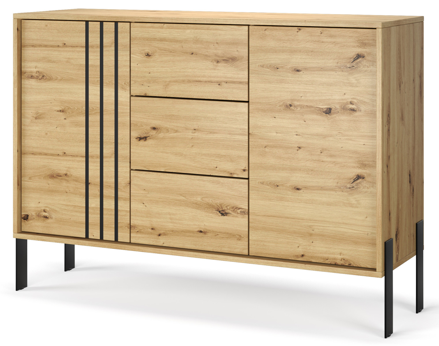 Komoda Nexo je moderní a praktický kus nábytku, který se skvěle hodí do obývacího pokoje, ložnice i předsíně. Jednoduché linie doplněné elegantními detaily z ní dělají ideální volbu pro moderní i loftově laděné interiéry.
