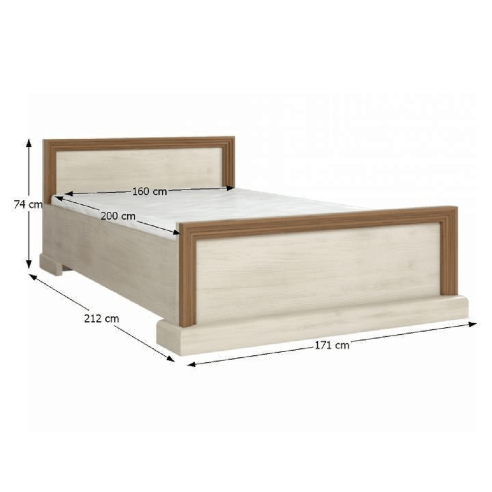 Ložnicový komplet ROYAL. Skříň, postel, dva noční stolky. Barevné provedení: bílá sosna skandinávská / dub divoký. Materiál: laminovaná DTD / kov.