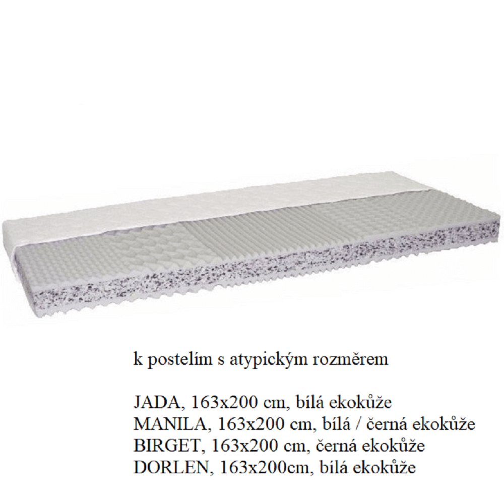 Sendvičová matrace Catania Eco ATYP, 163x200, kombinace PUR pěny a RE pěny, potah SILVER / 100% polyester /, lehce snímatelný, zip po celém obvodu, prát při 60 ° C. Matrace je v atypickém rozměru 163x200 cm. Nosnost: cca 110 kg. Tvrdost matrace: tvrdý T4. Je speciálně vyroben k postelím s takovým vnitřním rozměrem. Matrace doporučujeme k postelím:
