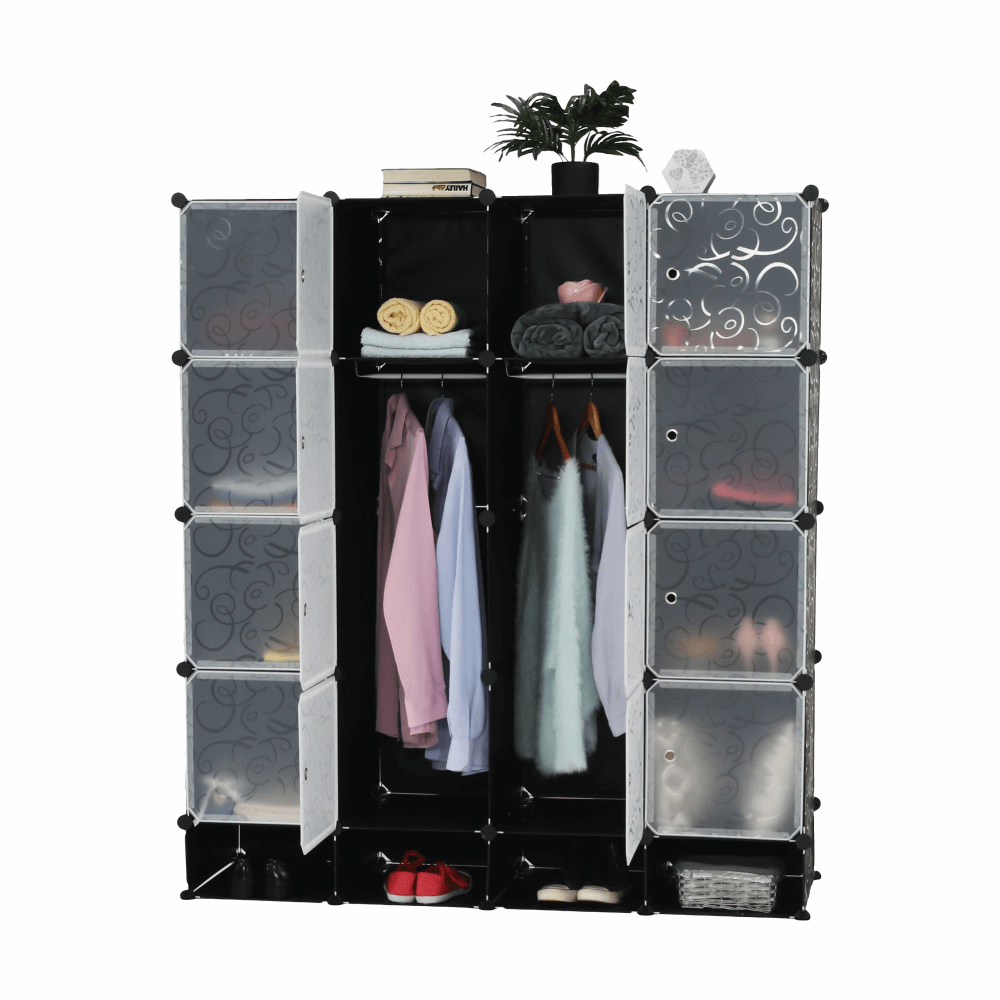 Modulární šatní organizér, černá / mléčná bílá, RODAN TYP 2