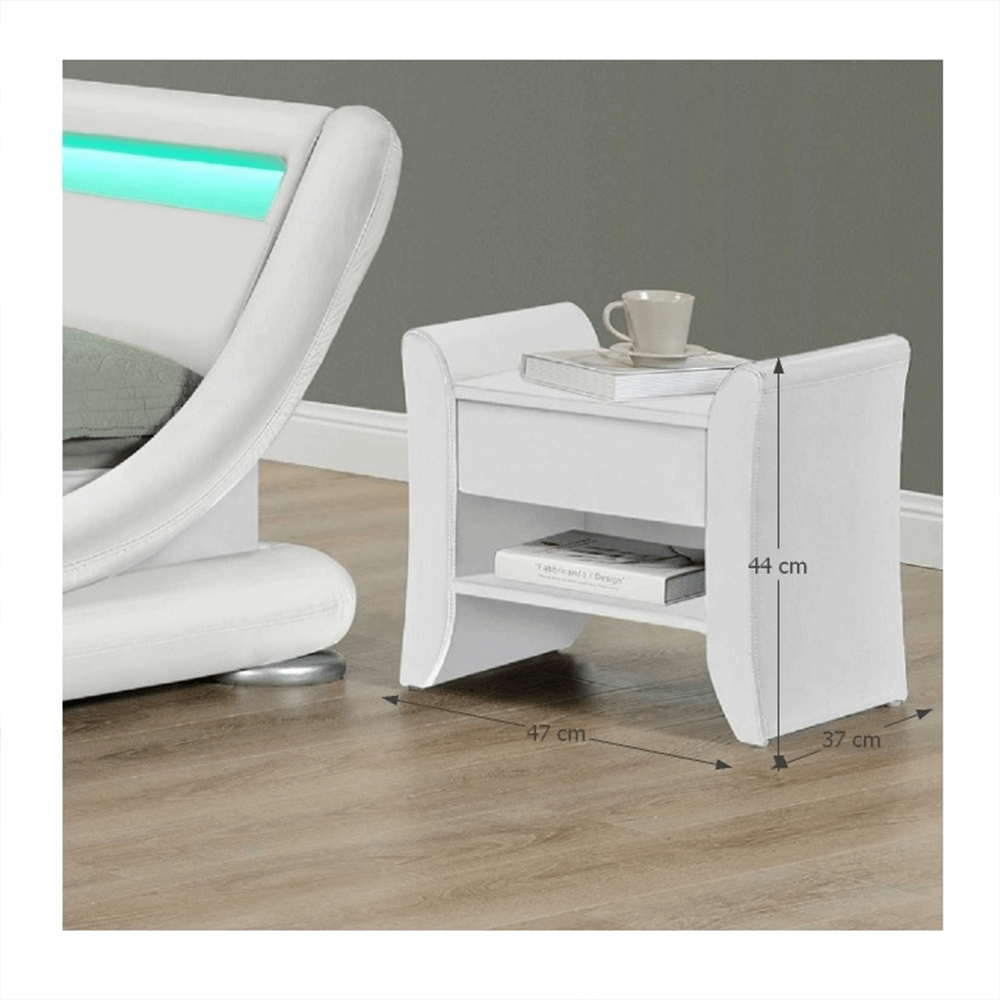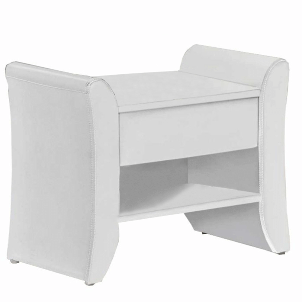 Celočalouněný noční stolek BOLTON se šuplíkem a poličkou, v provedení bílá ekokůže.