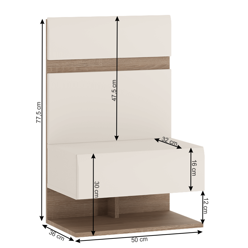 Domů / LOŽNICE/ Noční stolky / Noční stolek, bílá extra vysoký lesk HG / dub sonoma tmavý truflový, LYNATET TYP 95