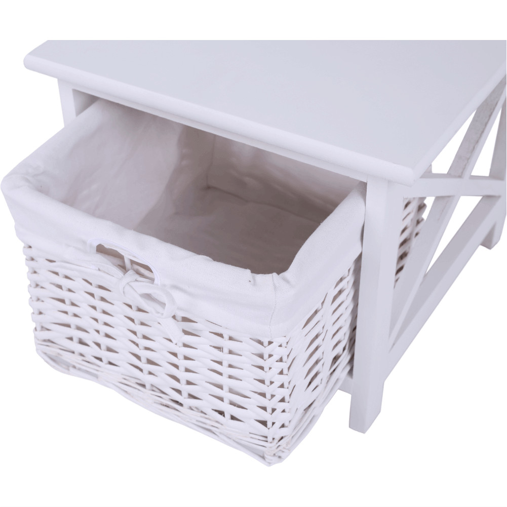 Noční stolek, dřevo / proutí/látka, bílá, Rafaello