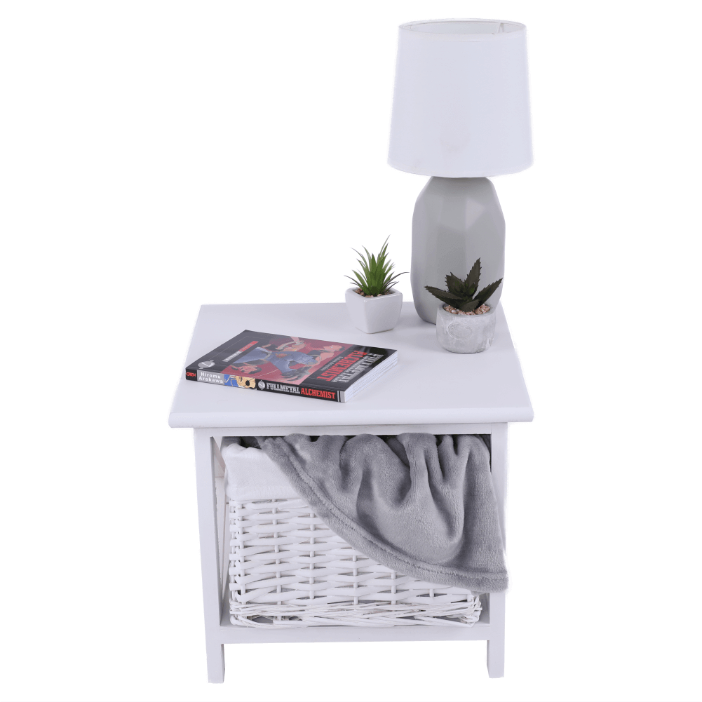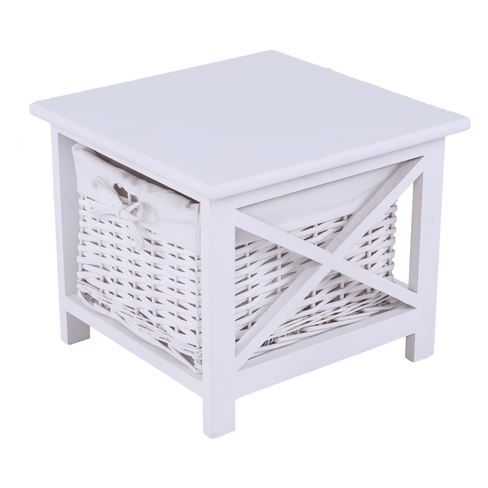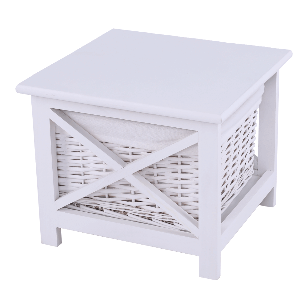 Domů / LOŽNICE/ Noční stolky / Noční stolek, dřevo / proutí/látka, bílá, Rafaello