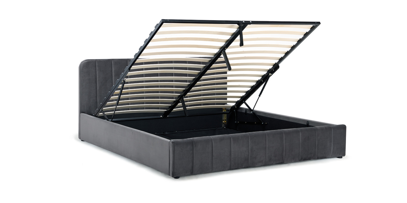 Díky výklopnému lamelovému roštu poskytuje postel velkorysý úložný prostor, kam snadno uložíte lůžkoviny, deky nebo sezónní oblečení.