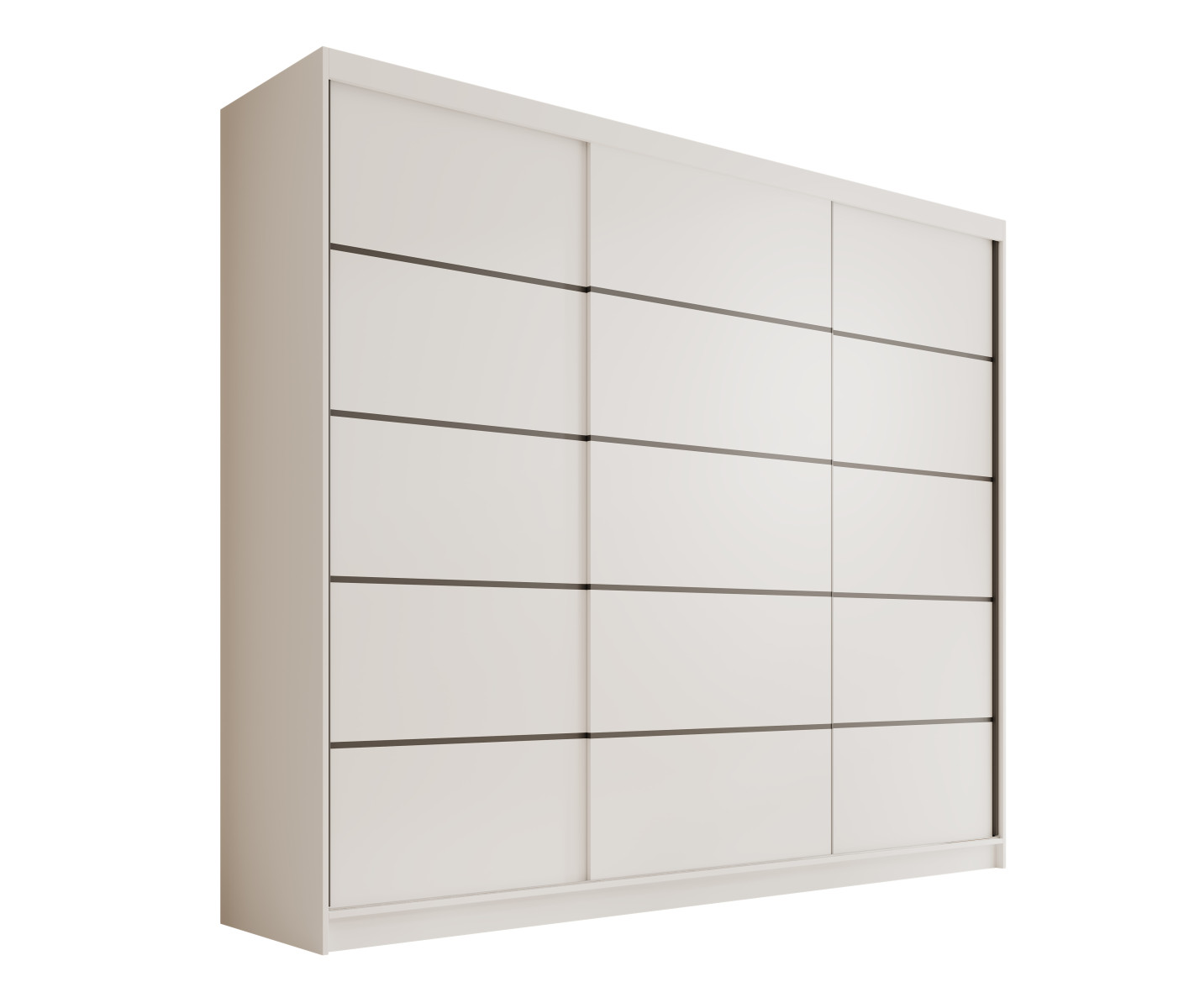 Skříň Andy 250 je bez zrcadla, čímž si zachovává čistý a elegantní vzhled, a zároveň poskytuje velkorysý úložný prostor pro oblečení, ložní prádlo i další předměty.