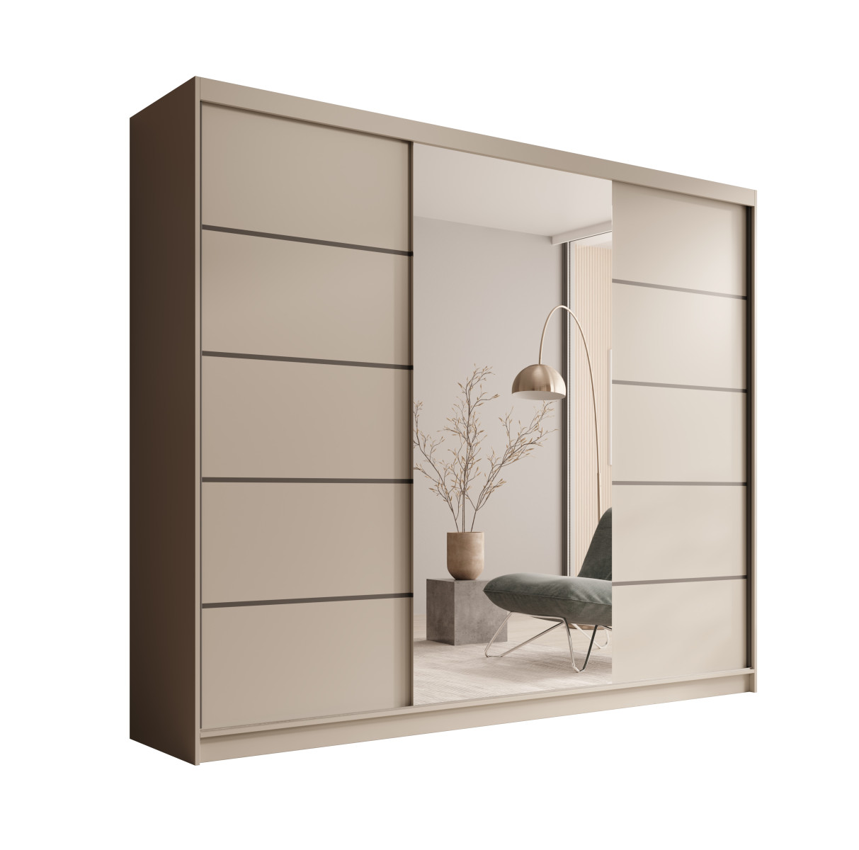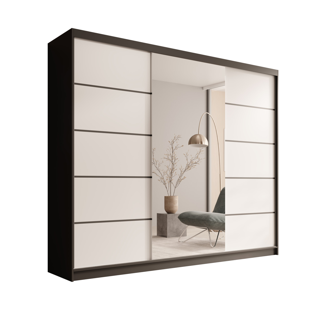 Posuvná šatní skříň Etna 250 představuje elegantní a praktické řešení pro každou ložnici či šatnu. Její moderní designse snadno sladí s různými styly interiéru – od minimalistických po klasické.