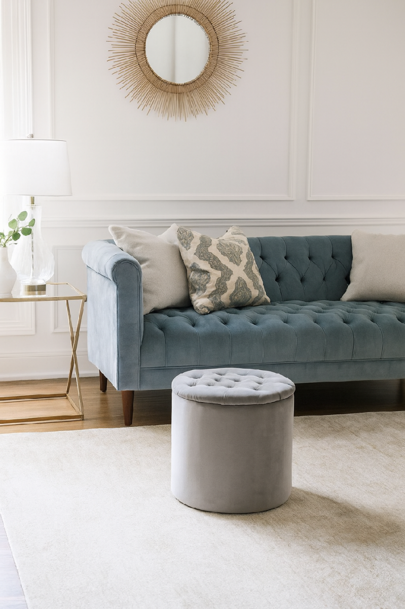 Díky kompaktnímu tvaru se skvěle hodí do obývacího pokoje, ložnice nebo předsíně – jako sedátko, podnožka nebo stylová dekorace.
