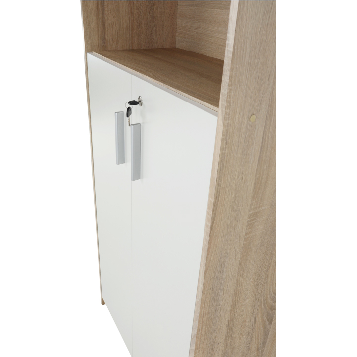 Kancelářský regál se skříňkou na zámek a otevřeným úložným prostorem JOHAN 2 NEW 10