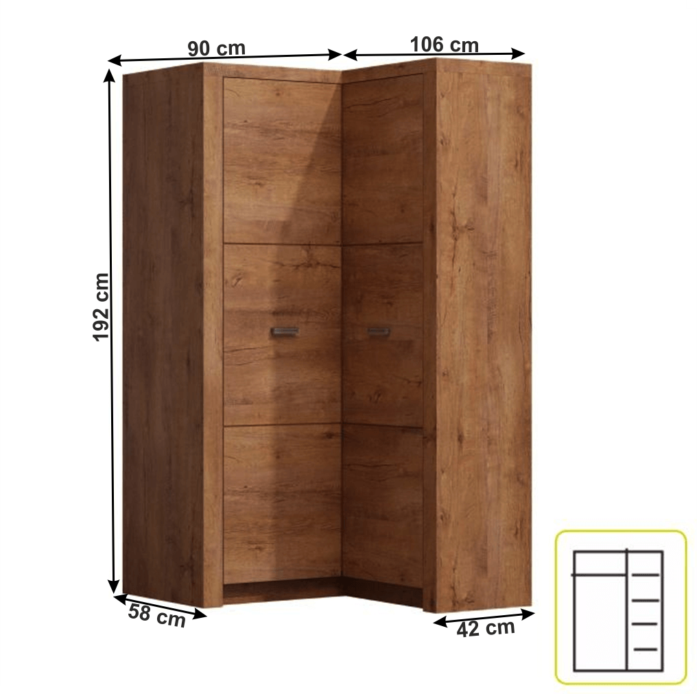 Rozměry ŠxHxV: 90 / 106x58 / 42x192 cm.