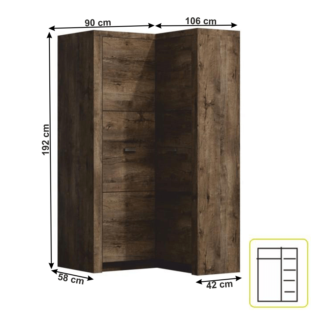 Rozměry ŠxHxV: 90 / 106x58 / 42x192 cm.