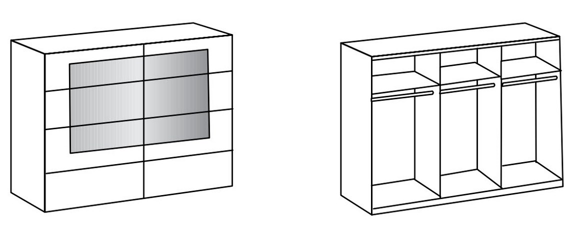 Šatní skříň s posuvnými dveřmi v krásném elegantním provedení z ložnicové kolekce BERGEN. Uvnitř skříně je v každé části 1 police a šatní tyč. Korpus i dvířka jsou z kvalitní LTD v barevné kombinaci bílá / hrubě řezaný dub. Šatní tyč a pojezdy jsou z kovu, úchyty jsou z plastu. Možnost dokoupení polic, vnitřních zásuvek, osvětlení atd., díky tomu si můžete vytvořit skříň podle Vašich představ. Dodáváme v demontovaném stavu. Po vyprodání skladových zásob rušíme tento sortiment z nabídky!