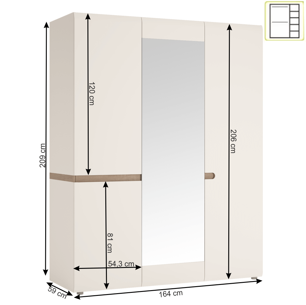 Rozměry (ŠxHxV): 164x59x209 cm.