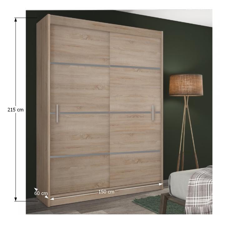 Skříň s posuvnými dveřmi, dub sonoma / šedá, Merina 150