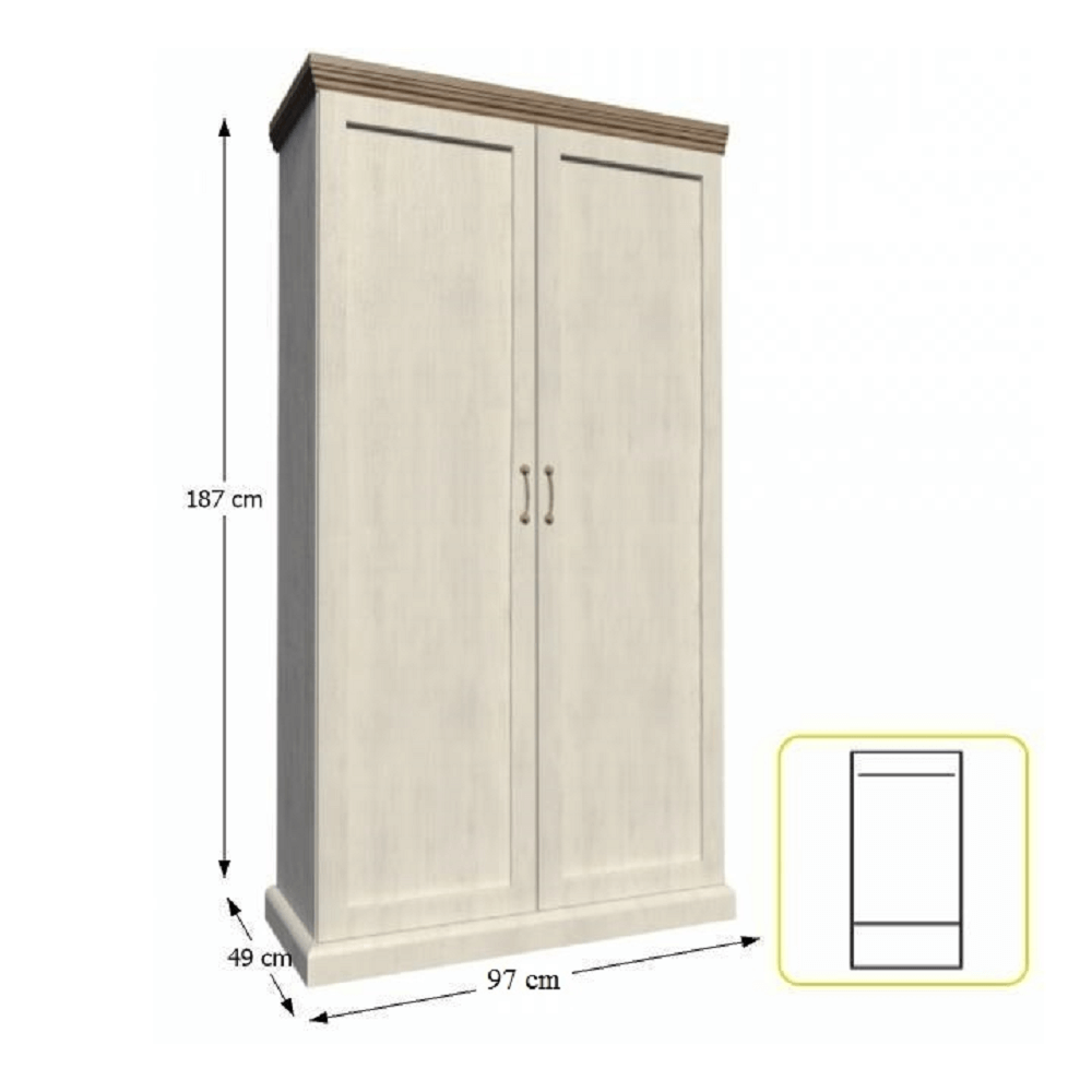 Věšáková skříň S2D s jednou policí z elegantního sektorového systému Royal v provensálském stylu.