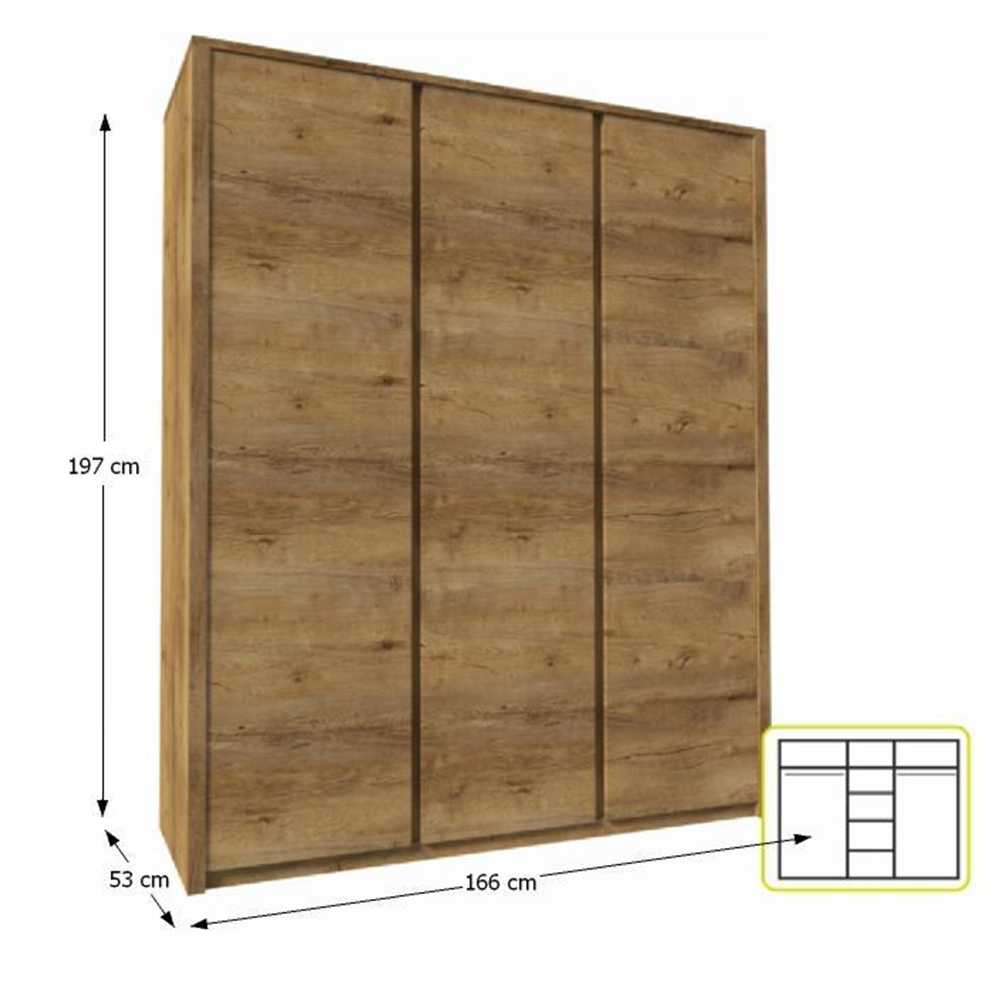 Domů / LOŽNICE/ Skříně a skříňky / Skříň třídveřová, dub lefkas tmavý, MONTANA S3D