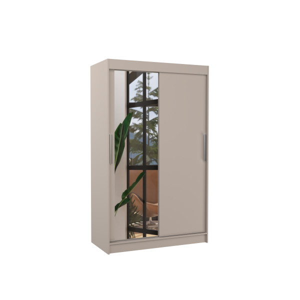 Zrcadlová posuvná skříň Bario je ideálním způsobem, jak uspořádat svůj prostor. Má prostorné police a tyč na zavěšení šatů, obleků, svrchních oděvů a košil. Na přední straně se nachází zrcadlo, které prostor opticky oživí. Díky tomu, že je šatní skříň posuvná, není potřeba další prostor pro otevírání dveří, což z ní činí ideální řešení pro malé místnosti nebo úzké chodby. Zajímavým prvkem je účinné LED osvětlení, které dodává skříni i místnosti nádherné kouzlo.