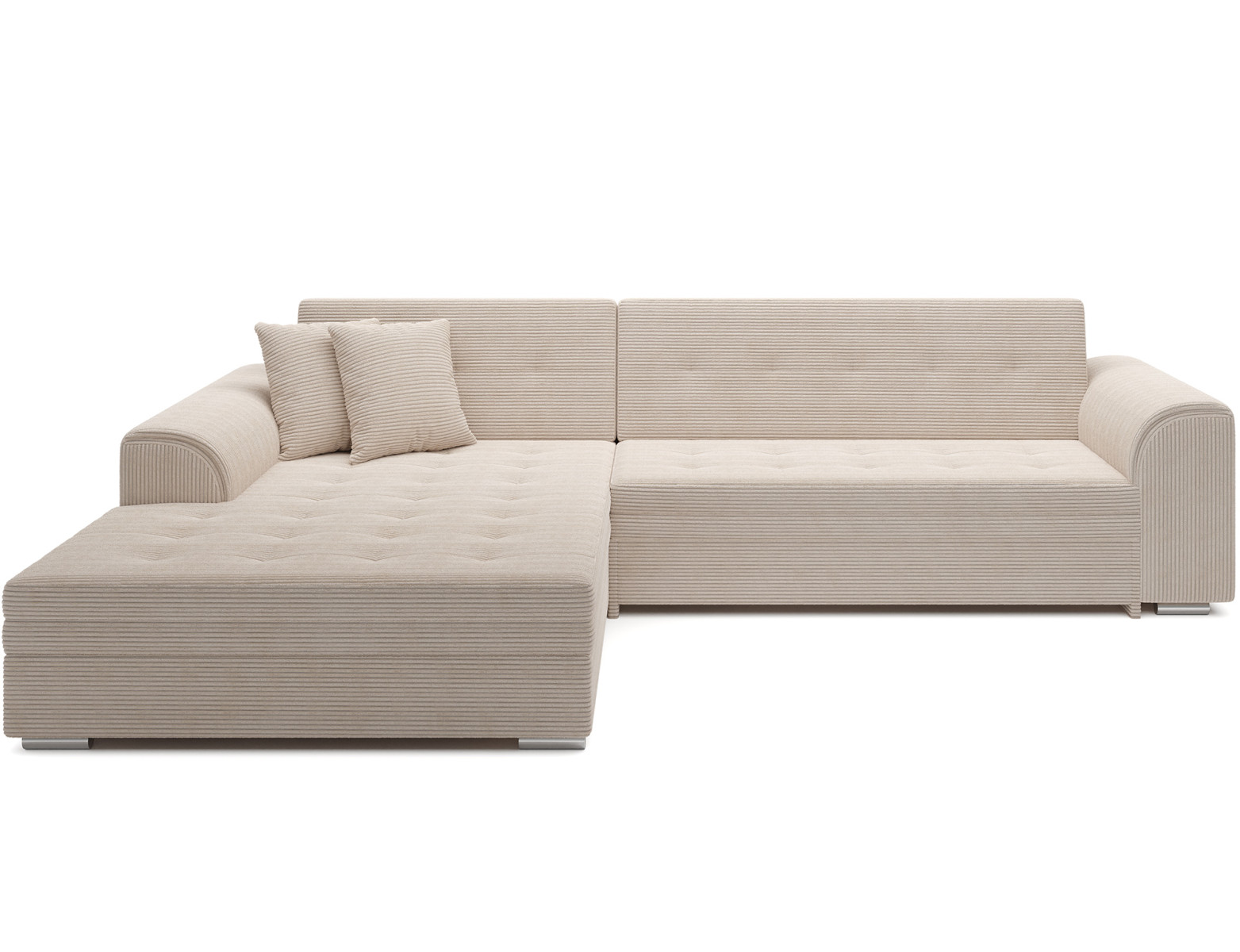 Sorento je stylová, multifunkční rohová pohovka se stabilní konstrukcí ve tvaru L, která vám bude sloužit jako kus nábytku po mnoho let. Pohovka o rozměrech 295 x 195 x 80 cm se dobře uplatní nejen jako místo pro denní odpočinek, ale také jako ústřední dekorace obývacího pokoje. Díky mechanismu typu delfín je rohová pohovka Sorento vhodná i pro noční odpočinek. Spací plocha o rozměrech 210 x 126 cm zajistí dlouhý spánek a plnohodnotnou relaxaci. Maximální pohodlí zaručuje kombinace vlnité pružiny a pěny T30, ze které je vyroben sedák. Při výběru rohové sedací soupravy Sorento stojí za povšimnutí její neobvyklý styl a také: tvarované opěradlo, zaoblené područky a stylové prošívání, které jí dodávají charakter. Sorento je styl, pohodlí a třída sama o sobě. Určitě stojí za to mít takový kus nábytku ve svém bytě. Sorento je styl, pohodlí a třída sama o sobě. Určitě stojí za to mít takový kus nábytku ve svém bytě.