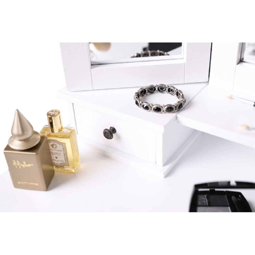 Domů / LOŽNICE/ Toaletní stolky / Toaletní stolek s taburetem, bílá/stříbrná, REGINA NEW