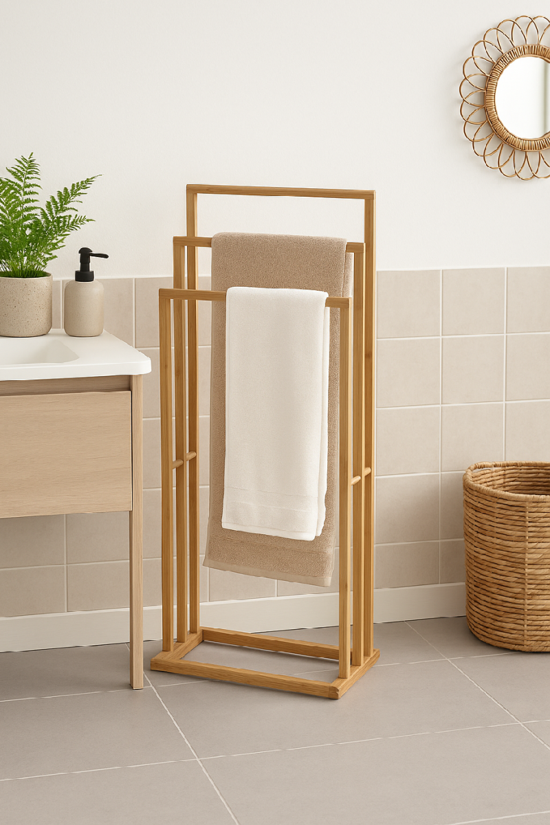 Bambusový věšák na ručníky, 82x42x24 cm.