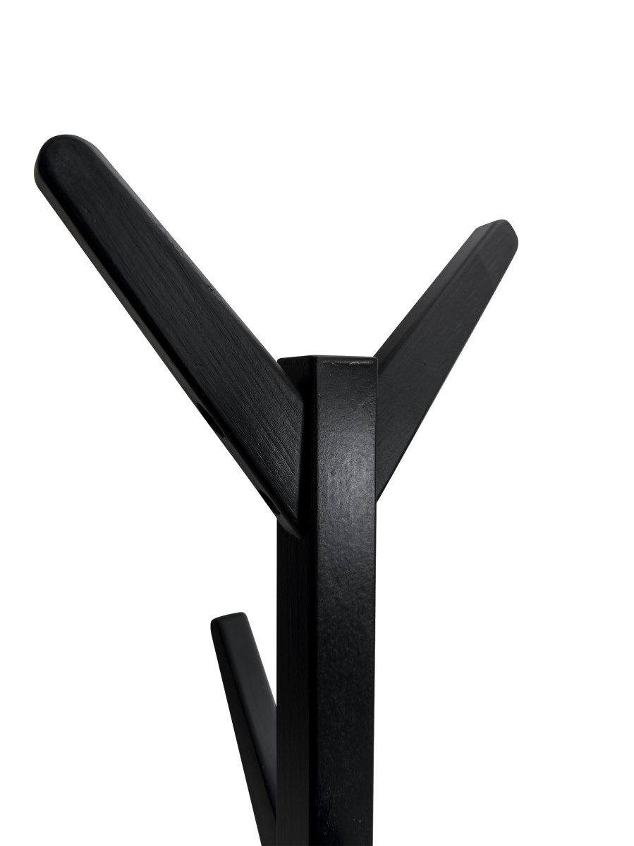 Věšák z borovicového dřeva v černé barvě.