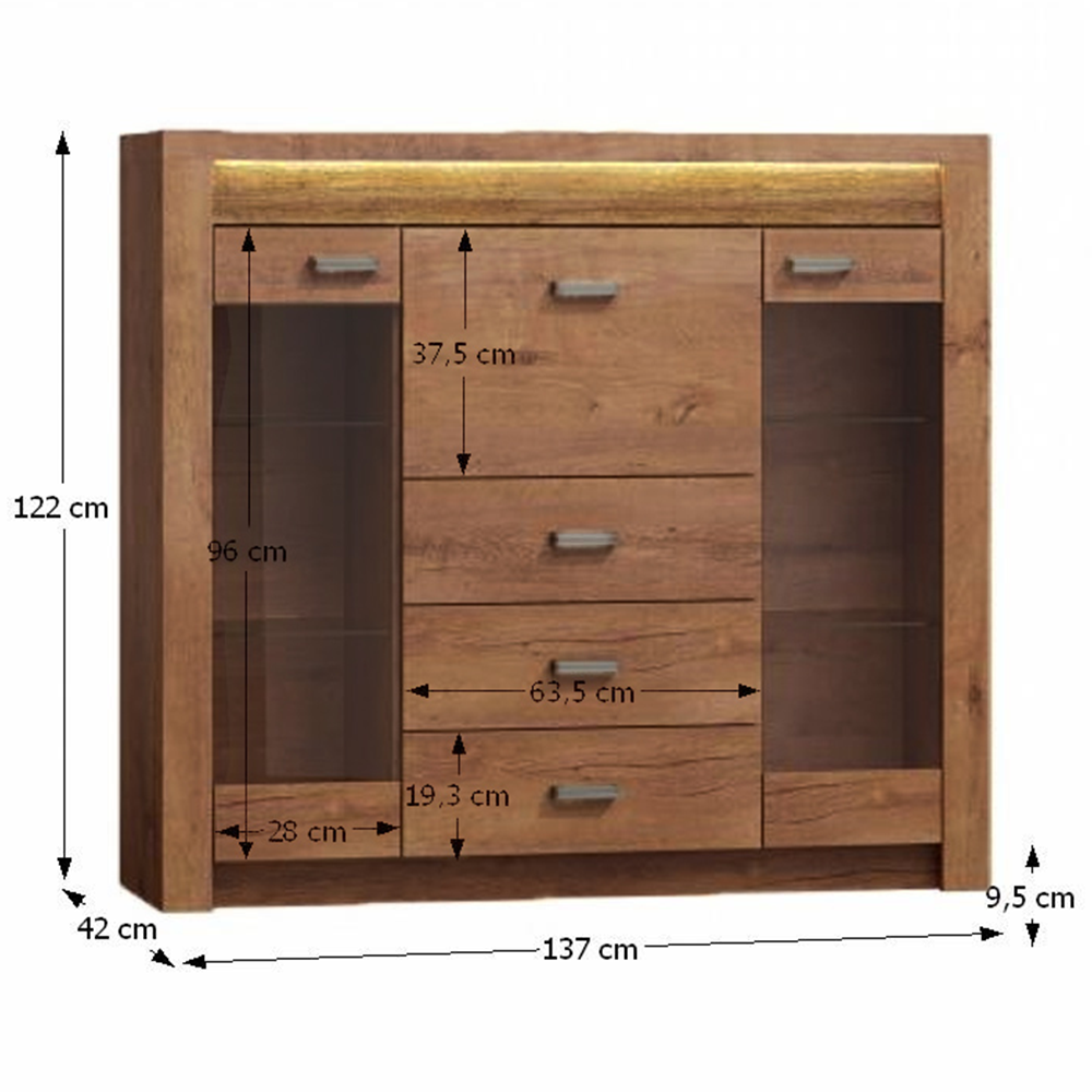Rozměry ŠxHxV: 137x42x122 cm.